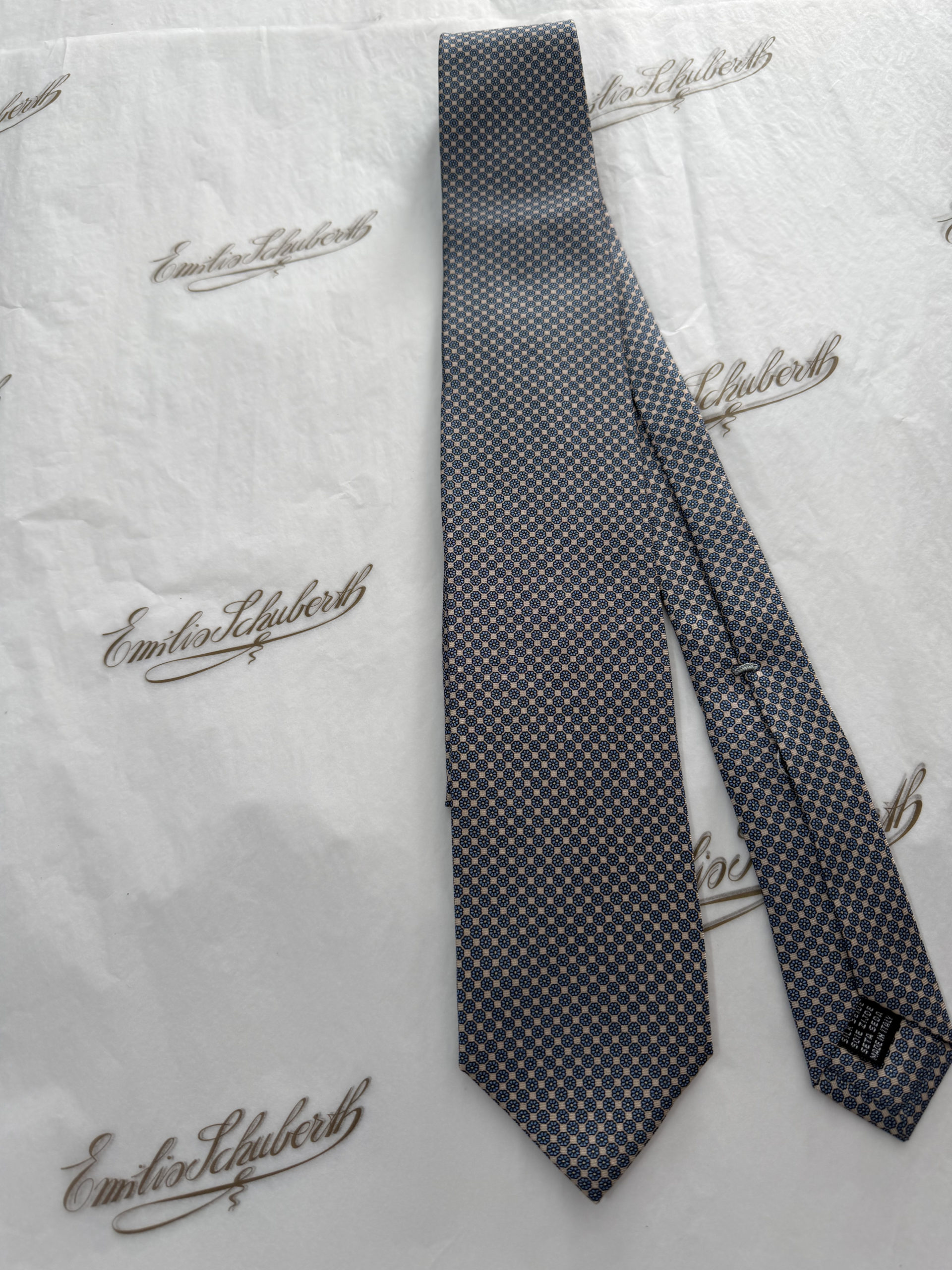La cravatta sette pieghe Emilio Schuberth è un capolavoro di autentica sartoria italiana, rigorosamente Made in Italy e interamente realizzato a mano. Ogni fase del processo produttivo — dalla stampa della seta al taglio del tessuto, fino alle rifiniture sartoriali — è eseguita con cura artigianale e attenzione assoluta ai dettagli.