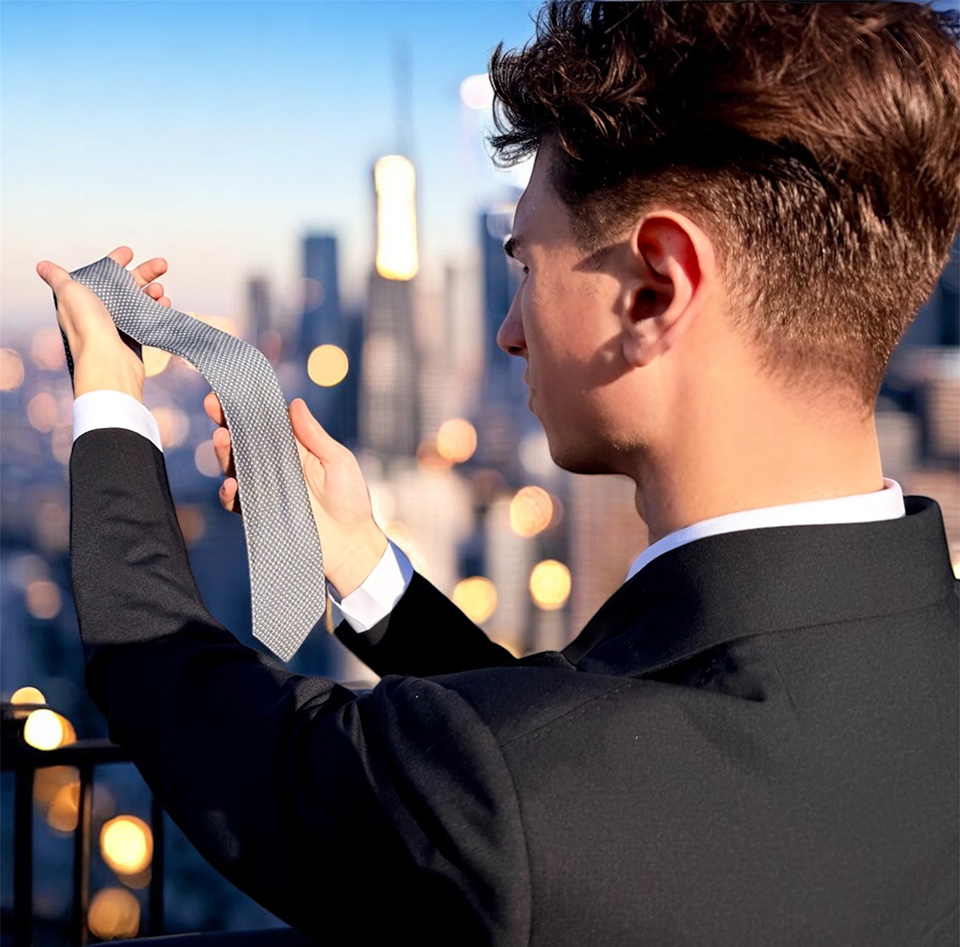 Confezionata in pregiato twill di seta 100%, la cravatta sette pieghe si distingue per l’elevata quantità di tessuto impiegata, nettamente superiore a quella delle cravatte tradizionali. Il quadrato di seta viene ripiegato sette volte su se stesso, donando alla cravatta una struttura ricca e una consistenza impeccabile, che si esprime con eleganza anche al nodo.