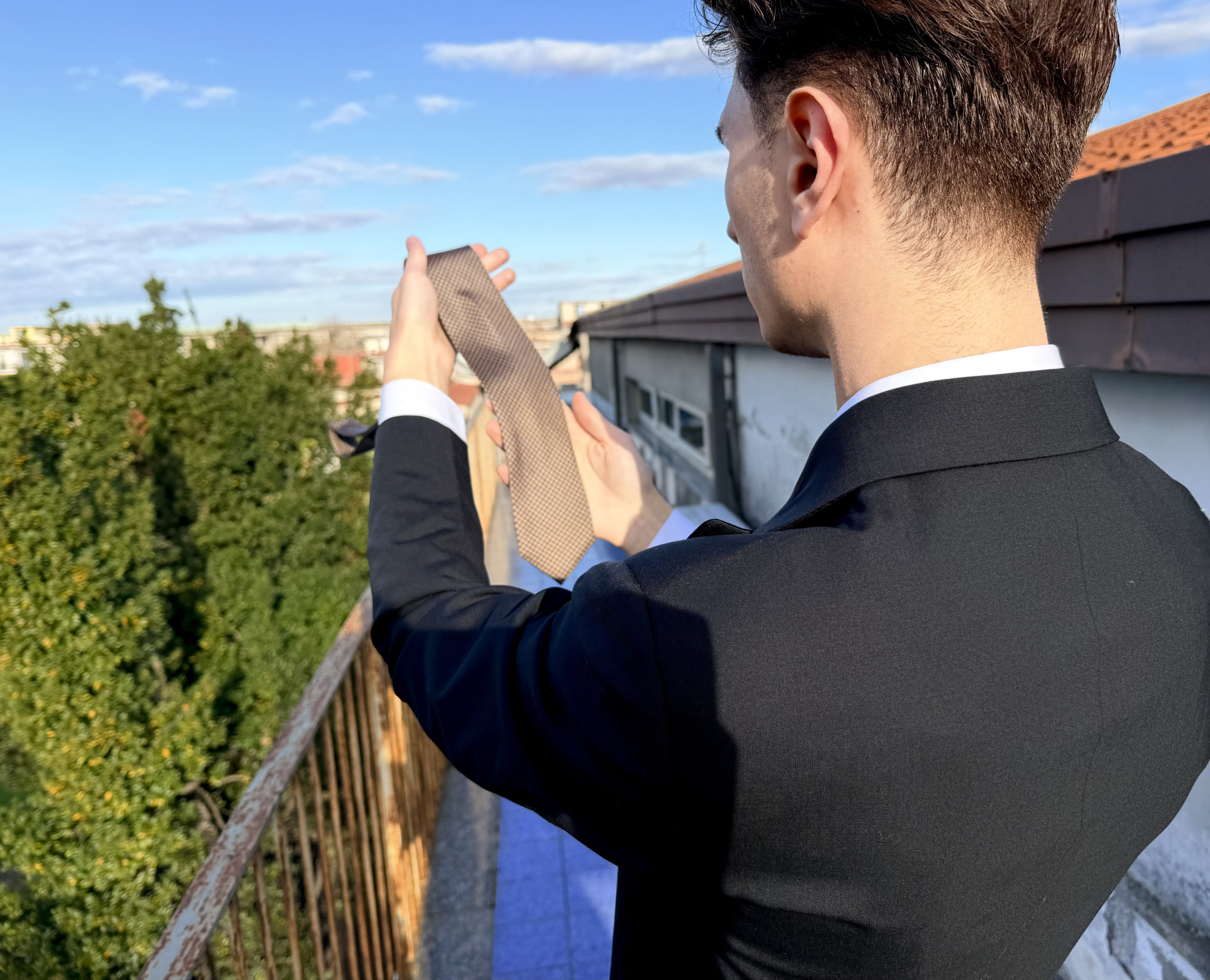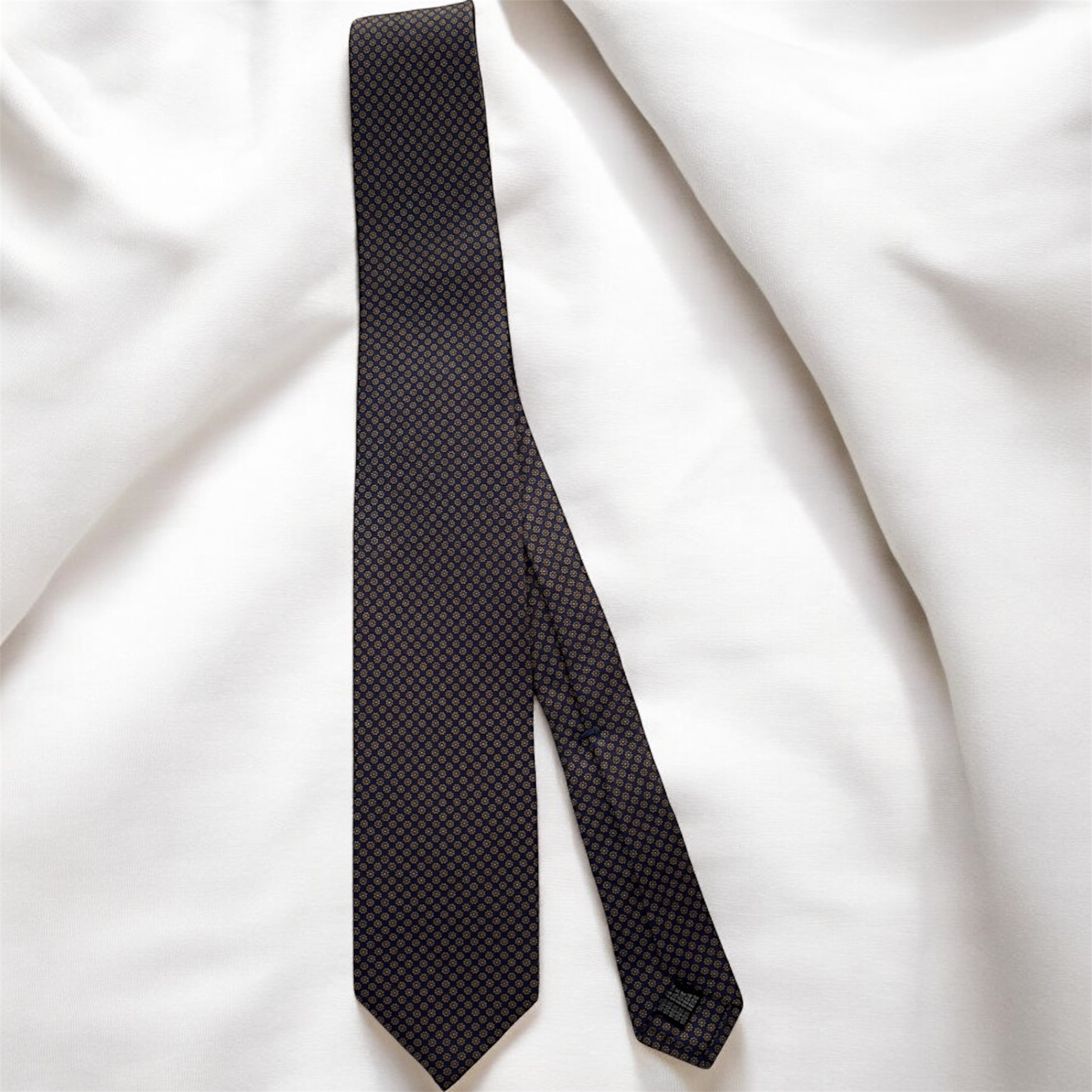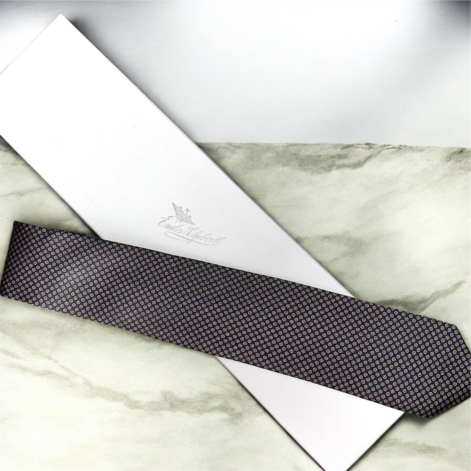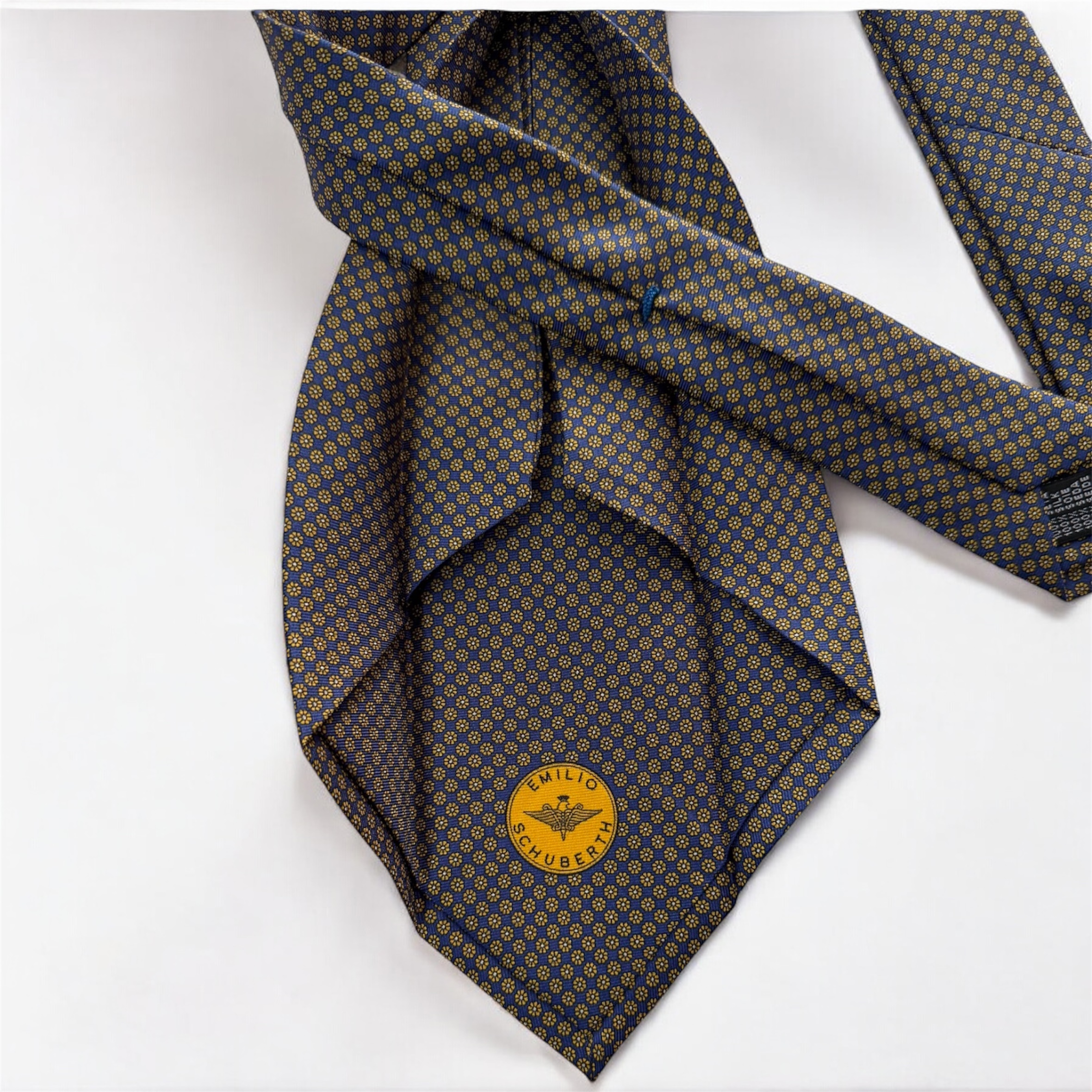 La cravatta sette pieghe Emilio Schuberth è un capolavoro di autentica sartoria italiana, rigorosamente Made in Italy e interamente realizzato a mano. Ogni fase del processo produttivo — dalla stampa della seta al taglio del tessuto, fino alle rifiniture sartoriali — è eseguita con cura artigianale e attenzione assoluta ai dettagli.