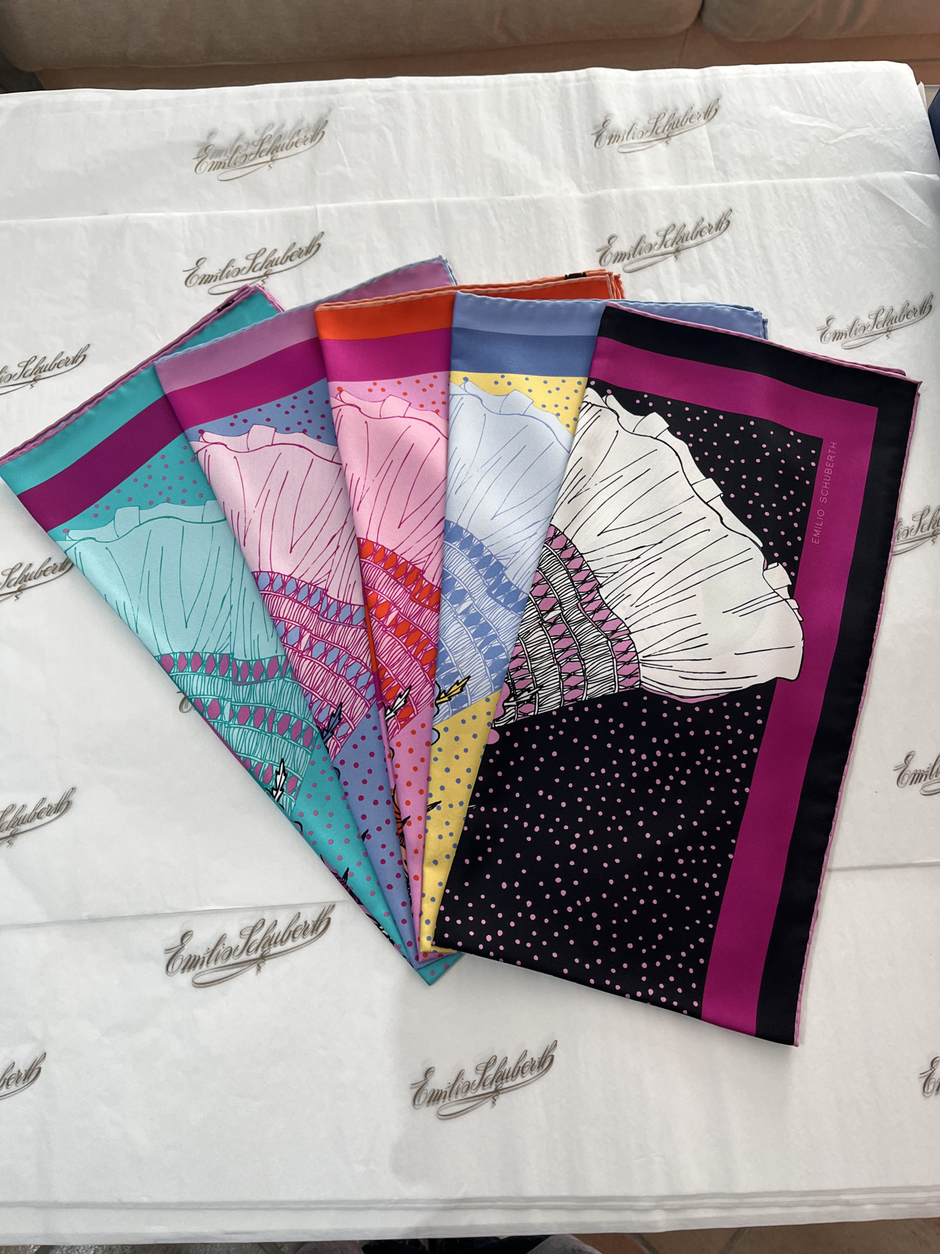 Il foulard rappresenta un pezzo di quell’universo fashion dell’atelier ‘Emilio Schuberth’, che negli anni ’50, in Via XX Settembre, nella Roma di Hollywood sul Tevere, era definito ‘Quinta Basilica di Roma’. Il logo centrale riprende il marchio Vintage che racconta come Schuberth sia stato un precursore e un visionario, già allora internazionale. Il foulard Schuberth è pensato per la donna di classe che ama aggiungere un tocco chic al suo look quotidiano.