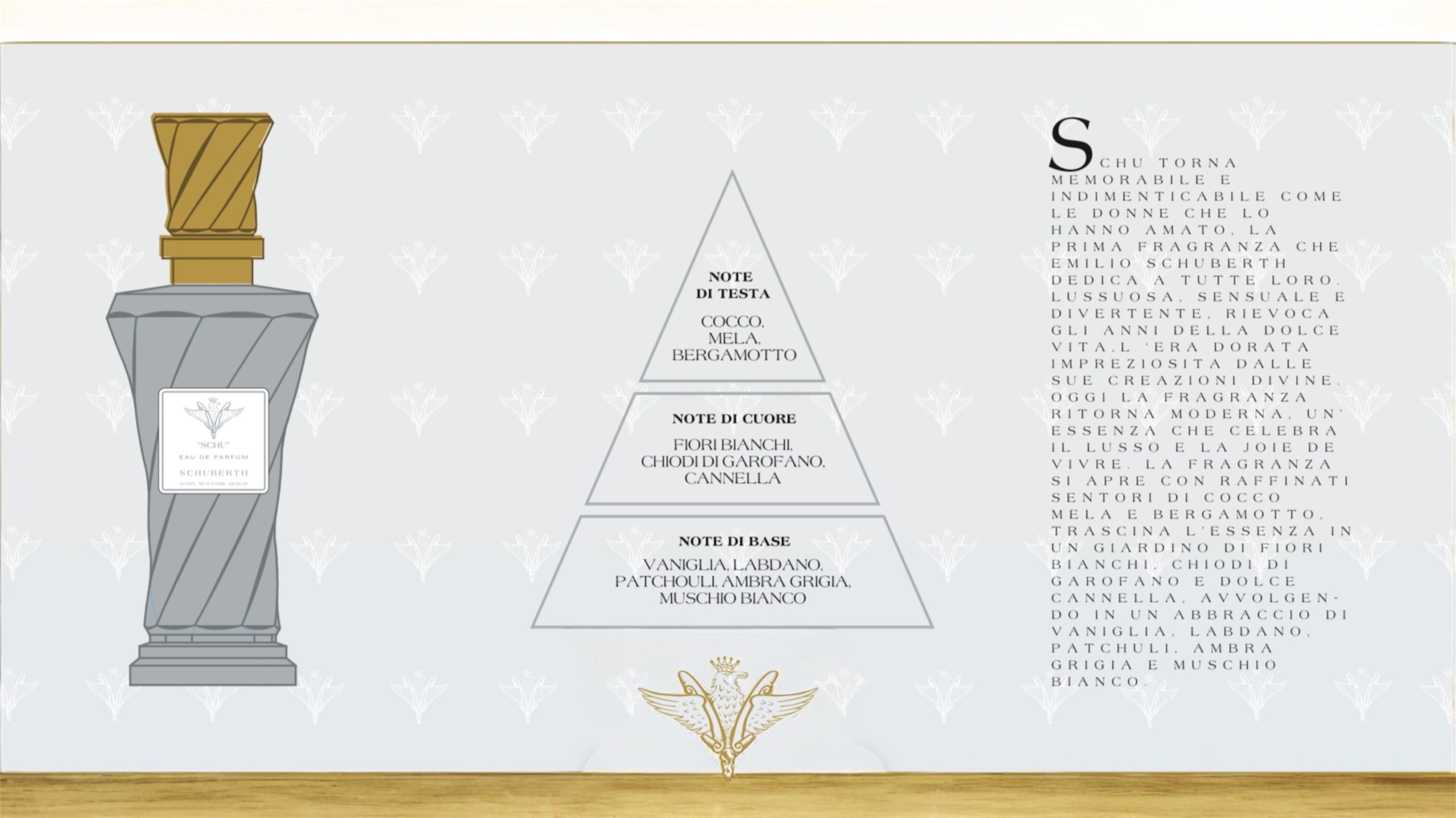 Schu Parfum non è solo una fragranza, ma un’estasi sensoriale dedicata a una donna trasformata in mito: adorata come una dea, iconica come una diva, radiosa come una principessa. È il desiderio che prende forma liquida. Rivivete l’incanto della Dolce Vita, un’epoca d’oro dove il lusso era audacia e il glamour un atto di ribellione. Tra sguardi magnetici e spirito anticonformista, Emilio Schuberth ha firmato il sogno di una femminilità senza tempo.