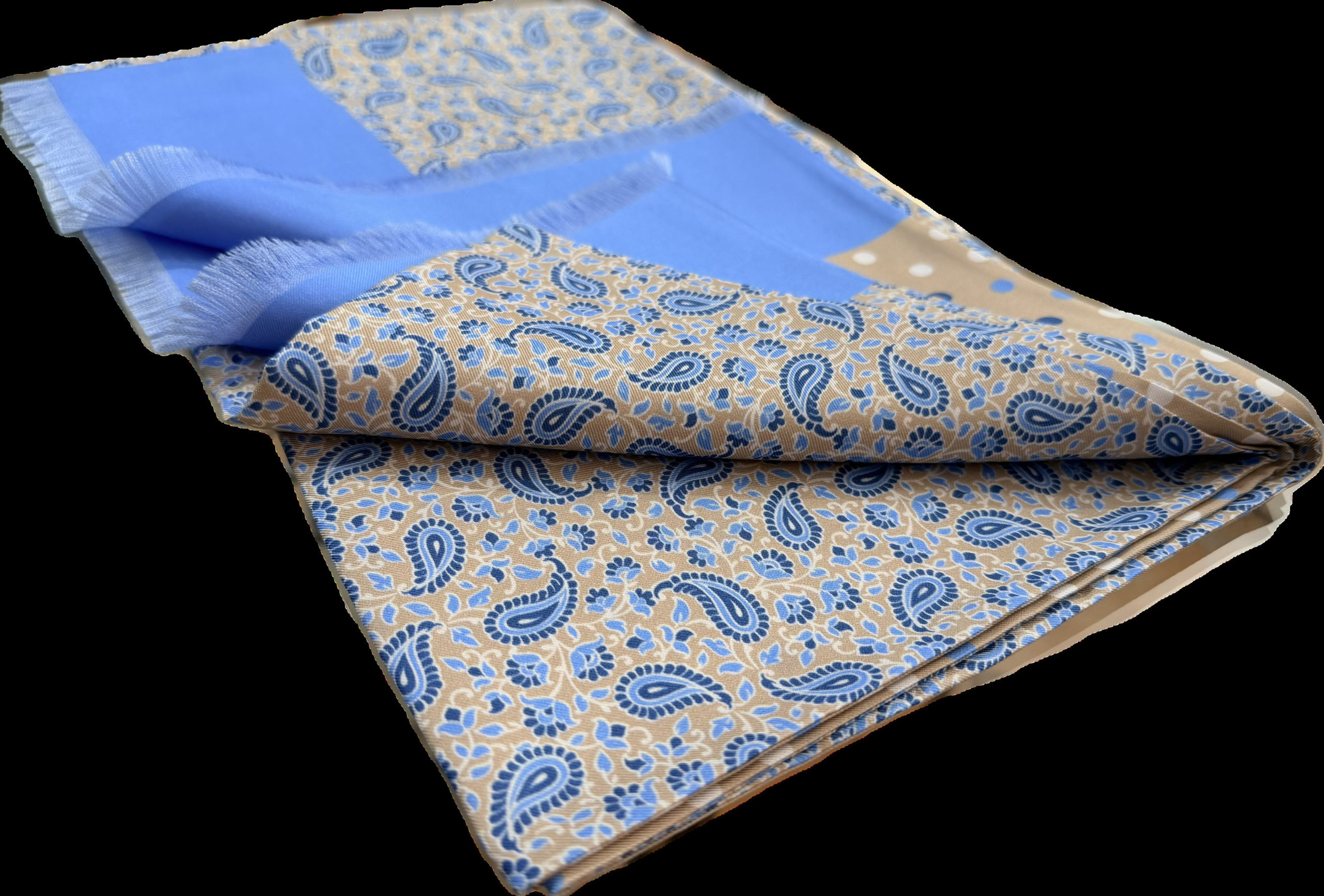 Vivace sciarpa dai toni rosa, fucsia e arancio, con stampa geometrica ondulata che dona movimento. Le sezioni a tinta unita aggiungono profondità, rendendola un accessorio deciso e ideale per dare colore e personalità all’outfit.