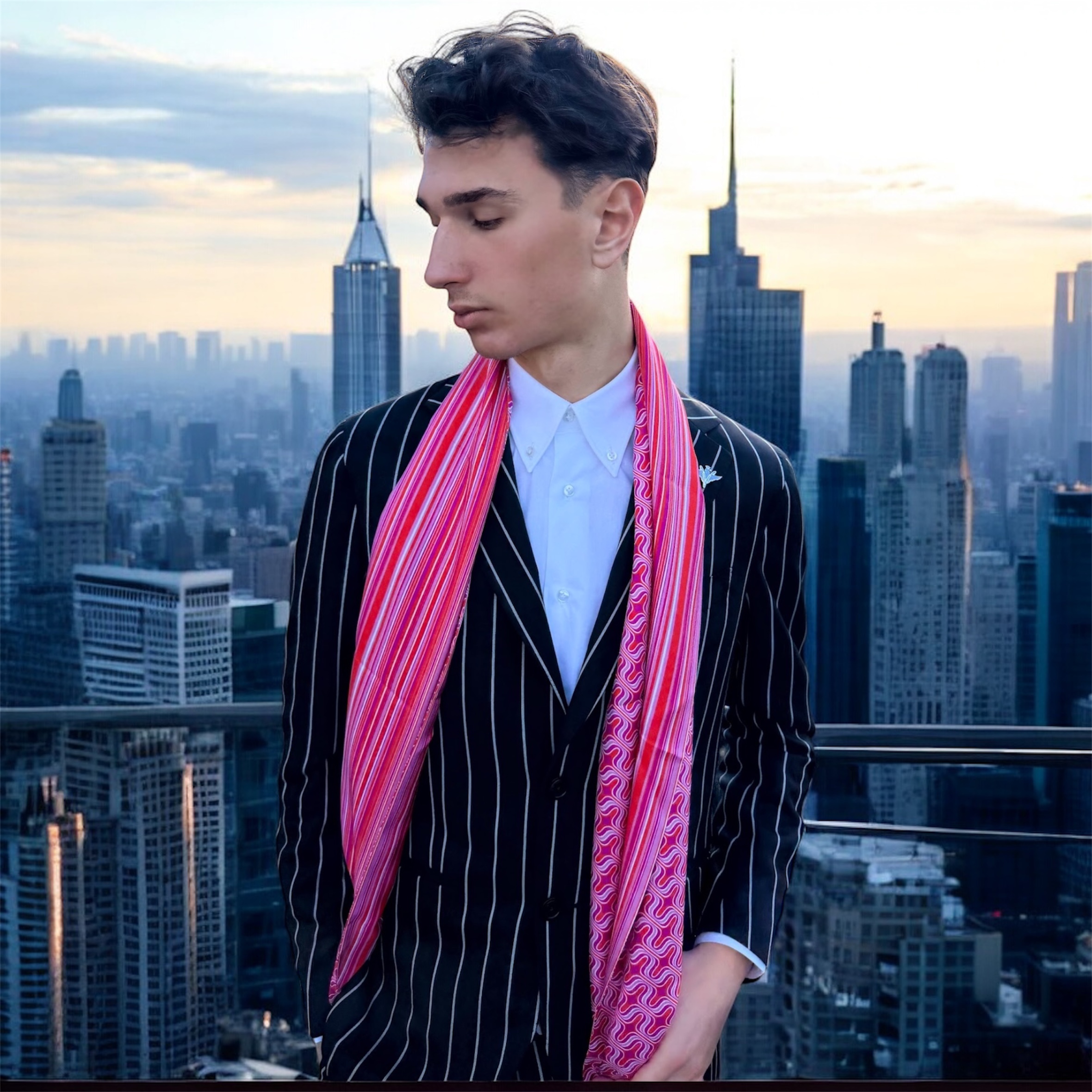 Elegante sciarpa dai toni delicati dell’azzurro e del beige, con raffinata stampa paisley e piccoli motivi floreali. Le sezioni a tinta unita azzurra creano contrasto e luminosità, per uno stile classico e sofisticato, perfetto per un look senza tempo.
